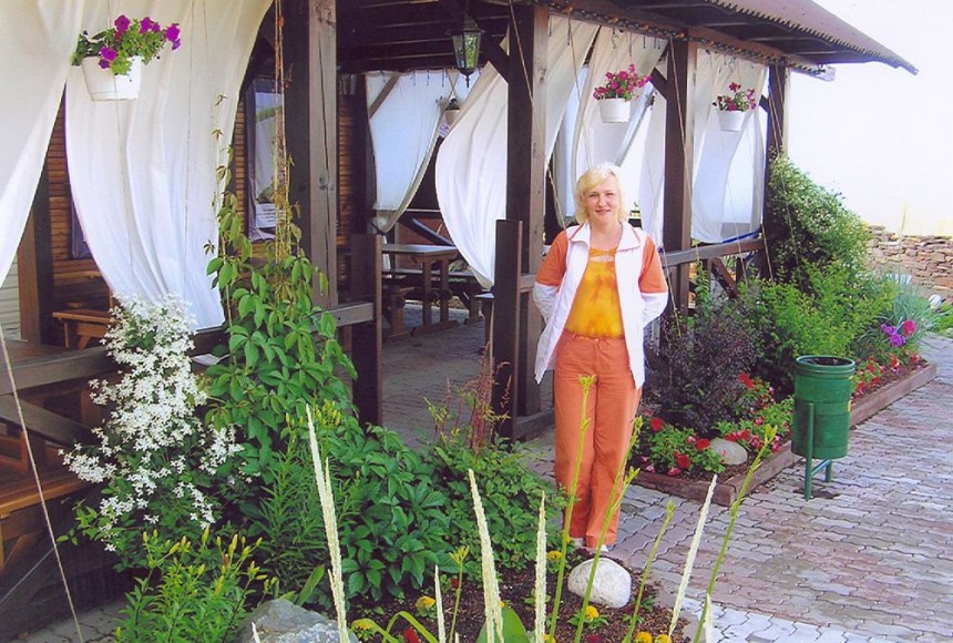 Внутренний дворик с видом на озеро